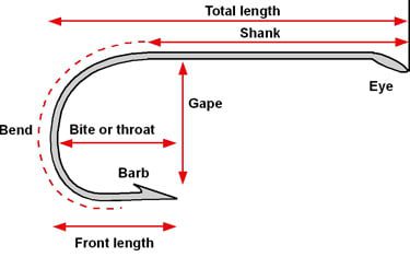 Come puoi vedere dallo schizzo, la dimensione fisica di un amo dipende dalla sua lunghezza complessiva e dalla sua apertura.